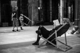 MENSCHEN AM SONNTAG 01 war eine Einladung für ALLE zum sonntäglichen Spaziergang durch die Hallen des gigantischen KRAFTWERKs Berlin um den Raum in seiner nackten „ruinösen“ Schönheit zu genießen. Im Zwischengeschoss des KRAFTWERKS war ein Kino eingerichtet, in dem der Filmklassiker MENSCHEN AM SONNTAG von Robert Siodmak, Edgar G. Ulmer und Billy Wilder aus dem Jahr 1930 als Loop vorgeführt wurde. So konnten die Besucher*innen sehen, was die Menschen an einem damaligen Sonntag in Berlin umtrieb. Siodmaks Film gilt als eines der wichtigsten Werke der ausgehenden Stummfilmzeit.