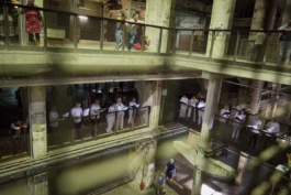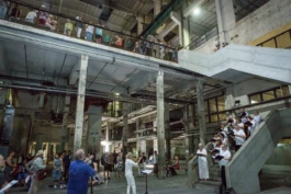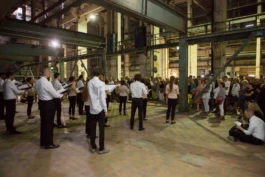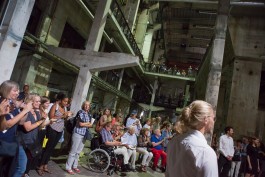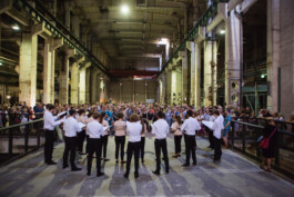 Bei dieser zweiten Ausgabe von MENSCHEN AM SONNTAG wurde stündlich, auf verschiedenen Etagen des KRAFTWERKs, ein Berliner Chor inszeniert.