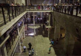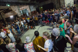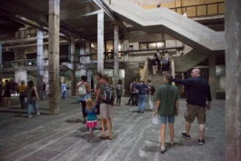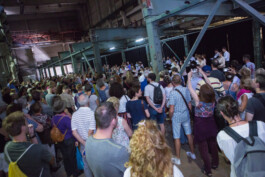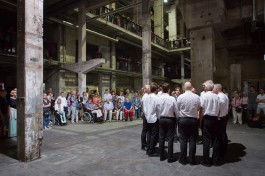 Die Besucher*innen waren aufgefordert, die Chöre & Stimmen räumlich zu erkunden, sie zu umkreisen, passieren zu lassen oder ihrem Klang in den Tiefen der Räume nachzufühlen. Im Gegensatz zu klassischen Choraufführungen ging es hier viel mehr um eine musikalische Entdeckungstour. Nach jedem Beitrag gab es Pausen, in denen die Besucher*innen den Raum ohne Ablenkung erkunden, ausloten konnten. Den Höhepunkt bildete zum Abschluss die gemeinsame Performance aller sieben Chöre, ca. 250 Stimmen.