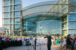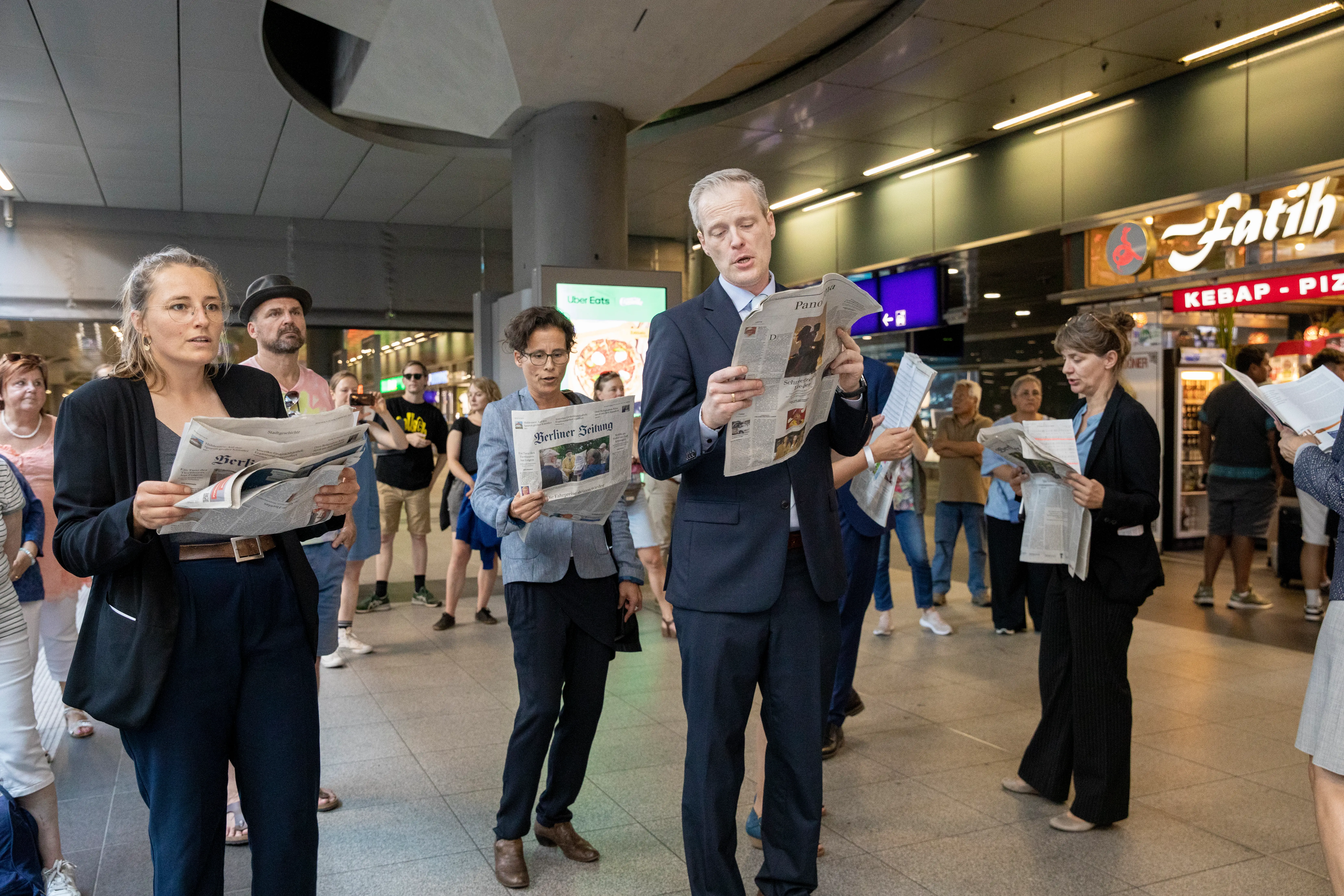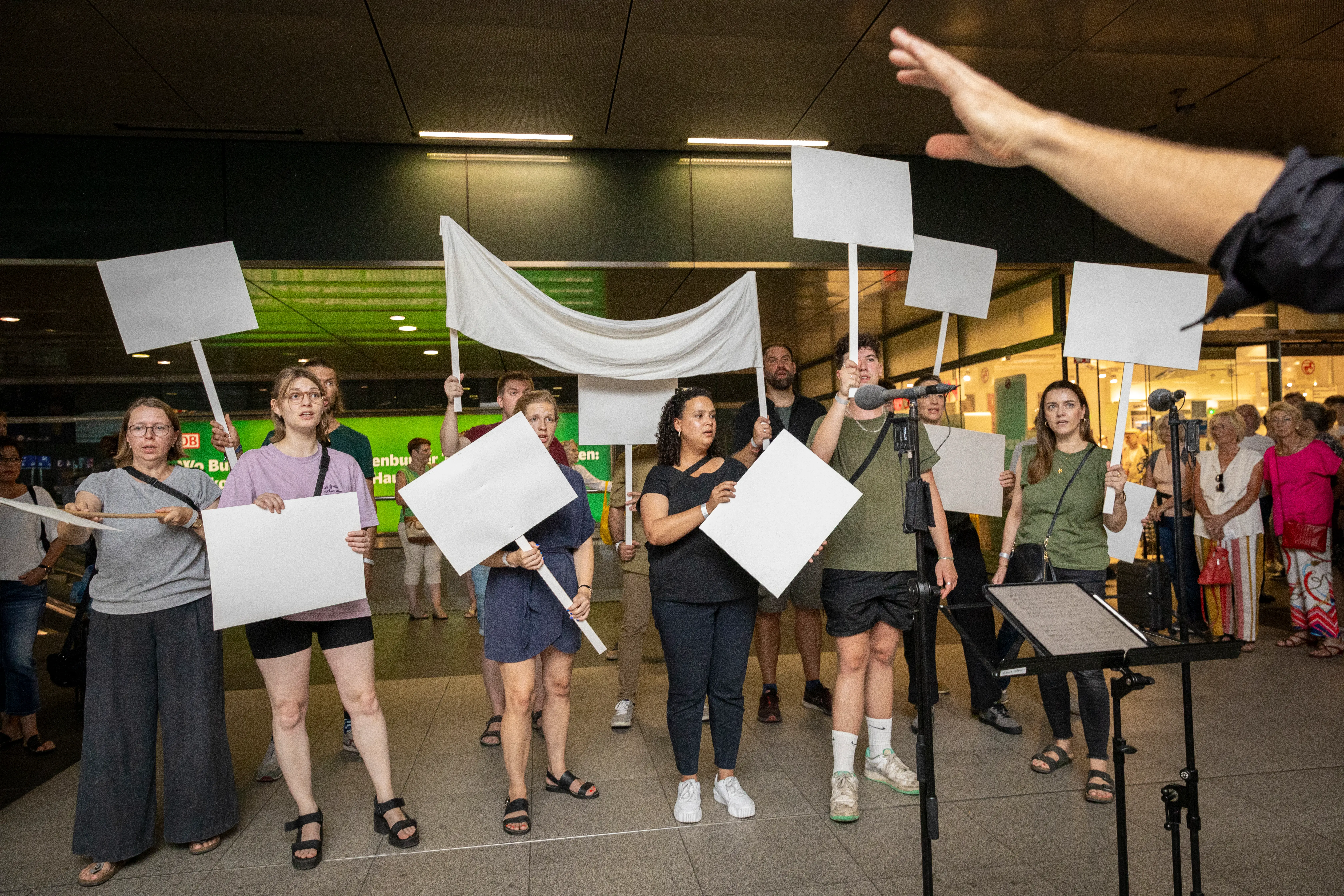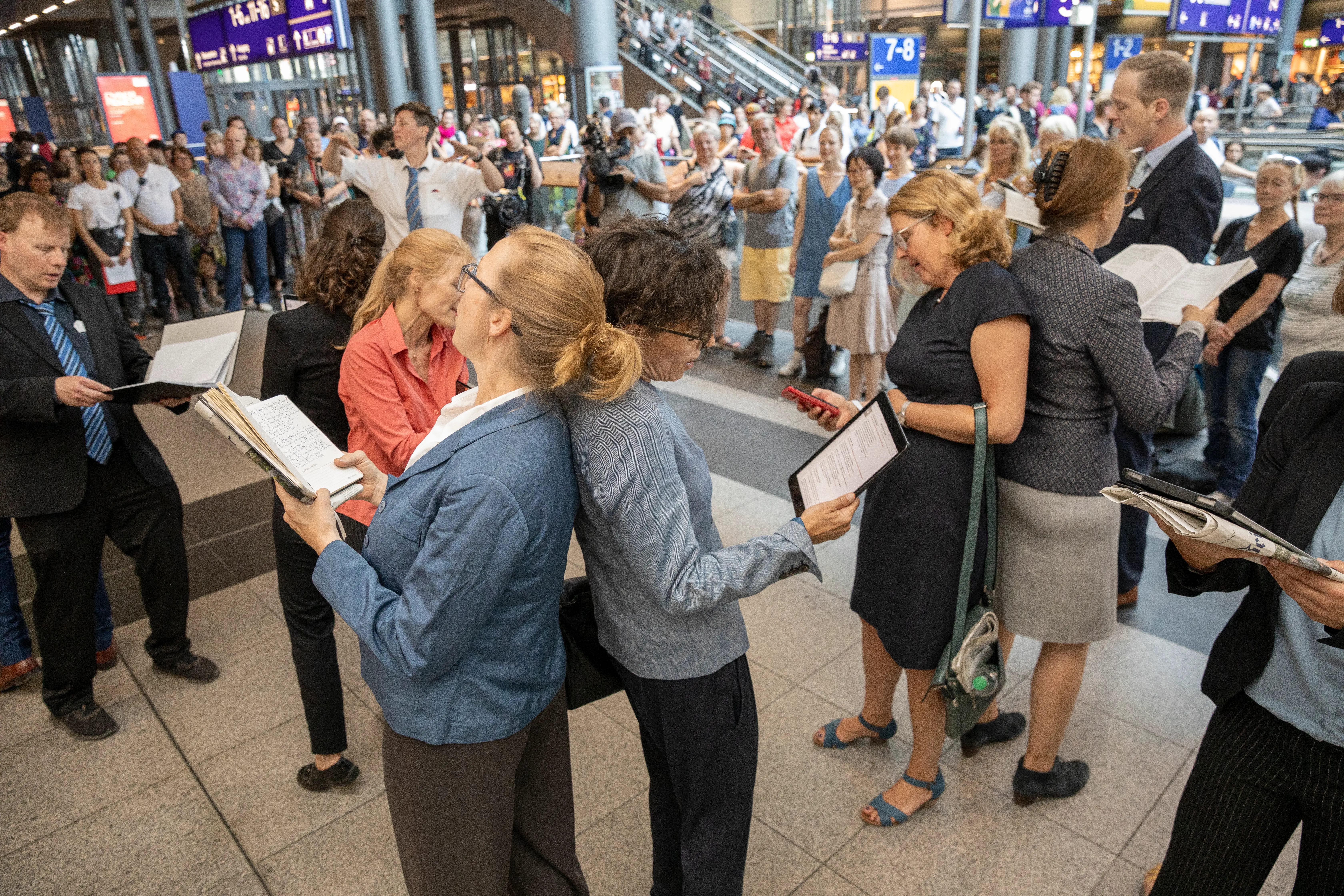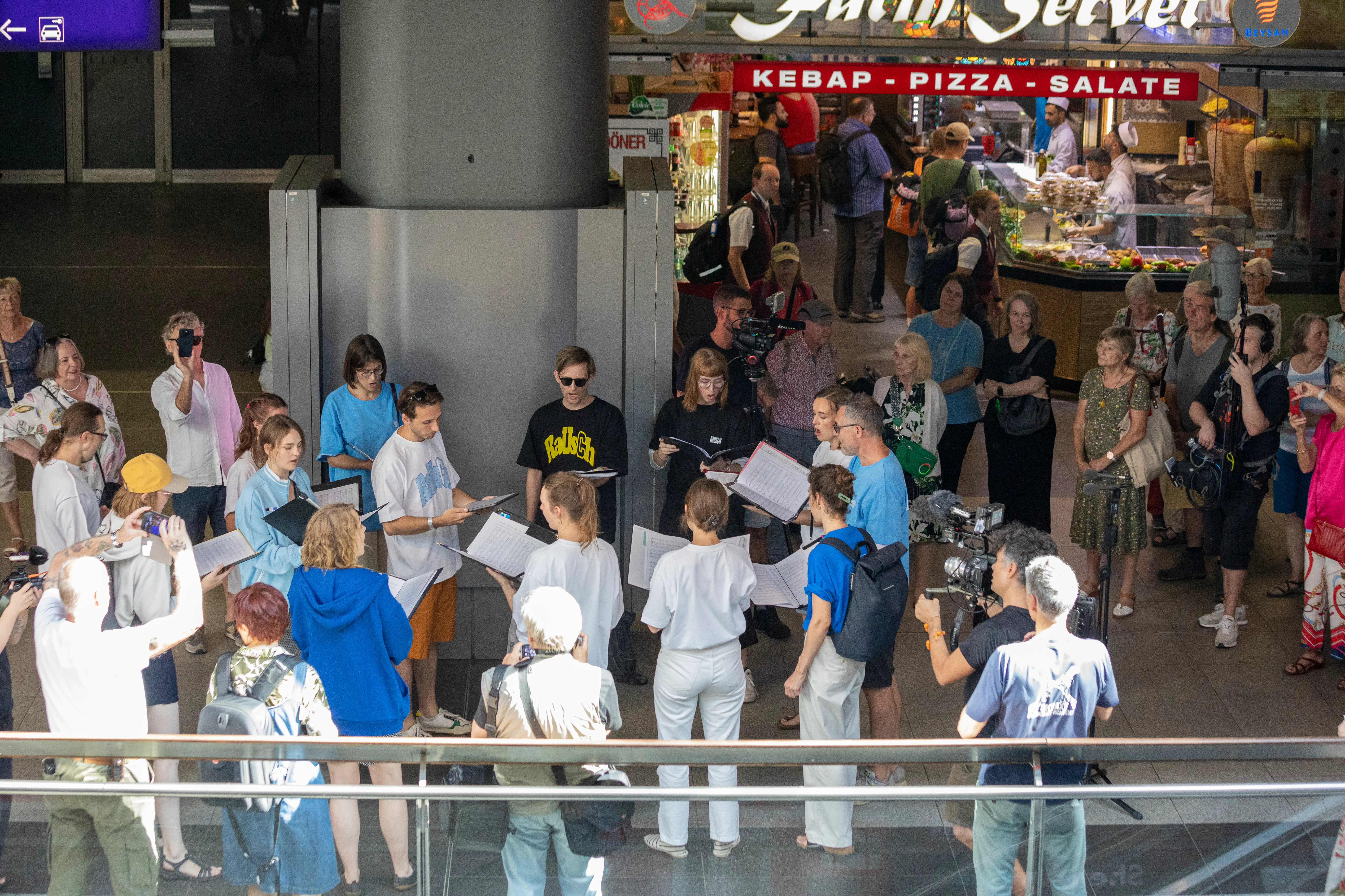 Einerseits waren die unterschiedlichsten Reisenden, Passagiere, die an dem Tag den Hauptbahnhof frequentieren angesprochen, gleichzeitig waren natürlich alle Berlinerinnen und Gäste der Stadt herzlichst eingeladen an dem Sonntag im Bahnhof zu flanieren und die Chöre zu genießen.